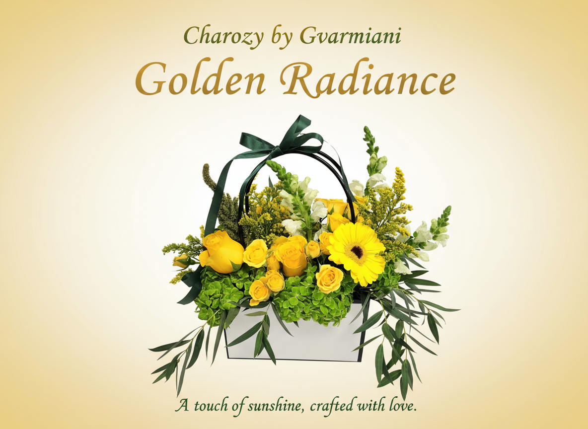 A joyful blend of golden roses and bright greens — crafted to bring sunshine and happiness to any space.