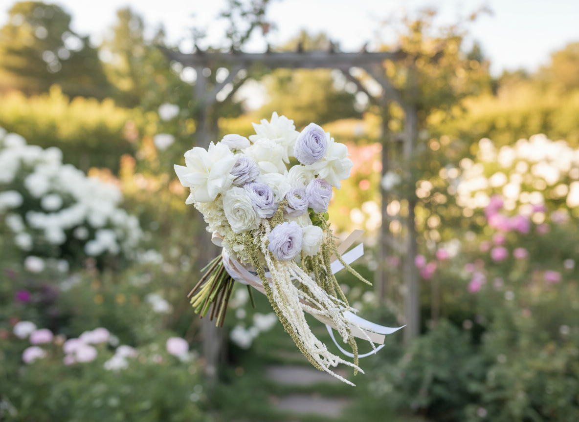 A whisper of purity and grace — soft white and lilac blooms hand-tied in perfect harmony for moments of timeless elegance.