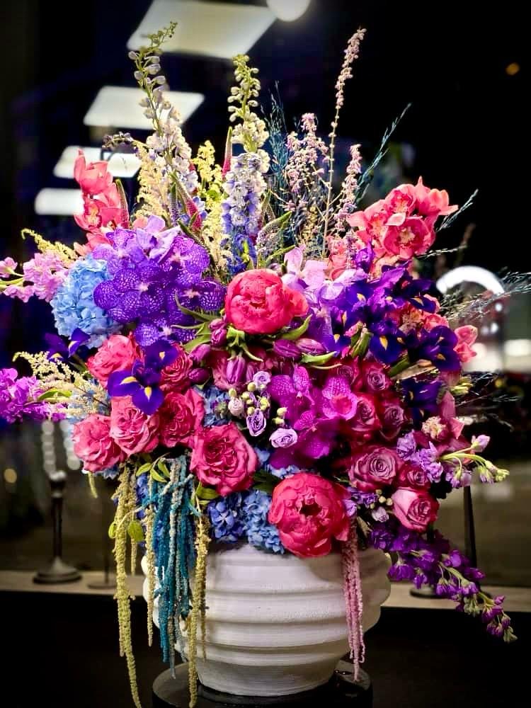 A royal fusion of violets, blues, and fuchsia — an opulent bouquet that commands admiration.