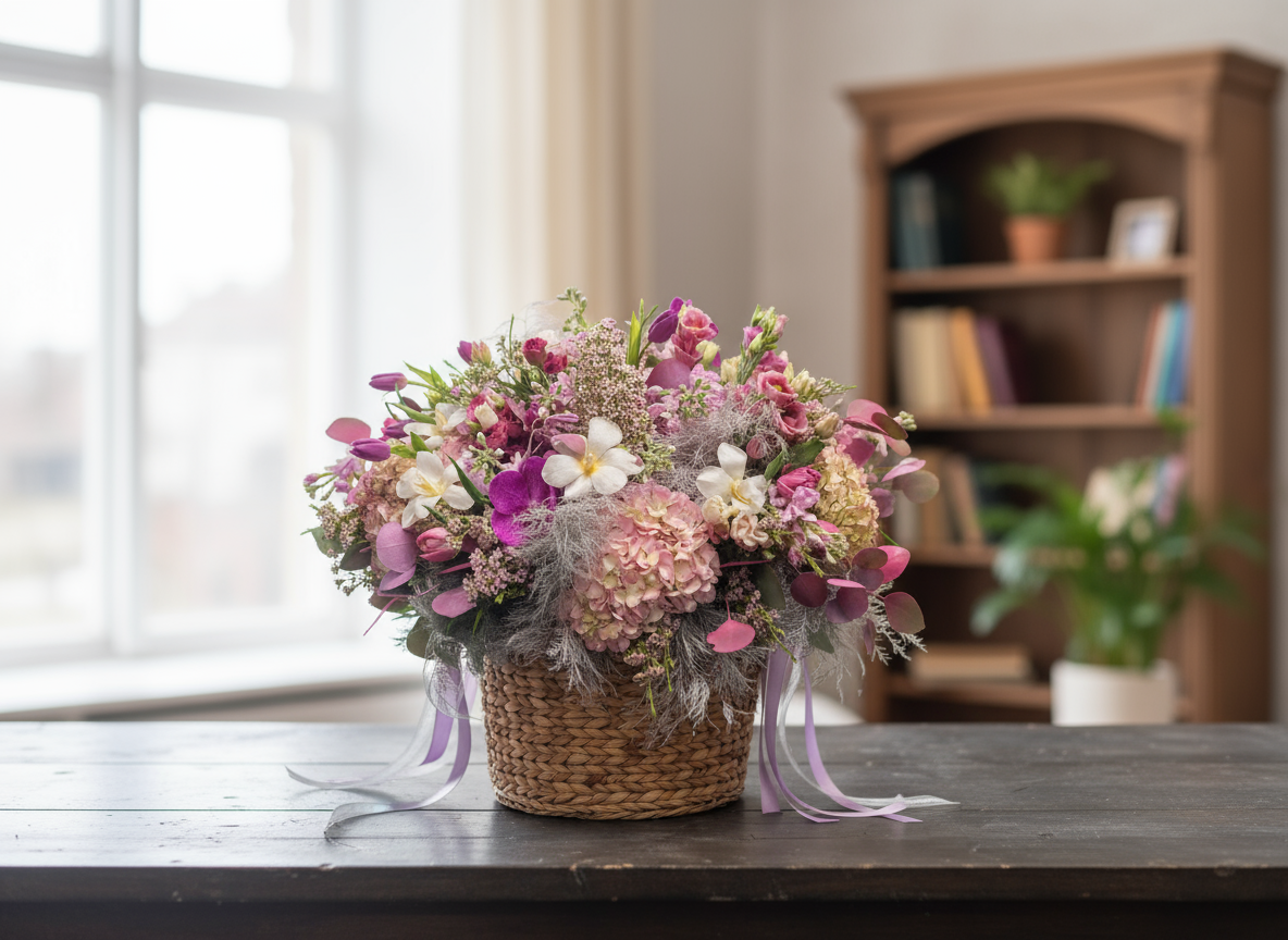 A delicate basket of soft blooms — pure harmony inspired by nature’s whispers.